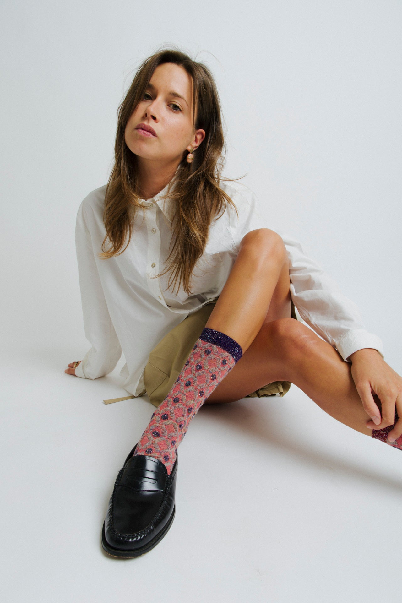 Made from long-fibre cotton blended with lurex. Reinforced toe and heel and a flat-knit toe seam for enhanced comfort.
